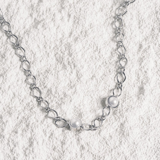 Contrast Pearl Layered Snake Chain Necklace - Gold