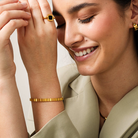 Rectangle Curb Chain Bracelet - 14K Gold Plated