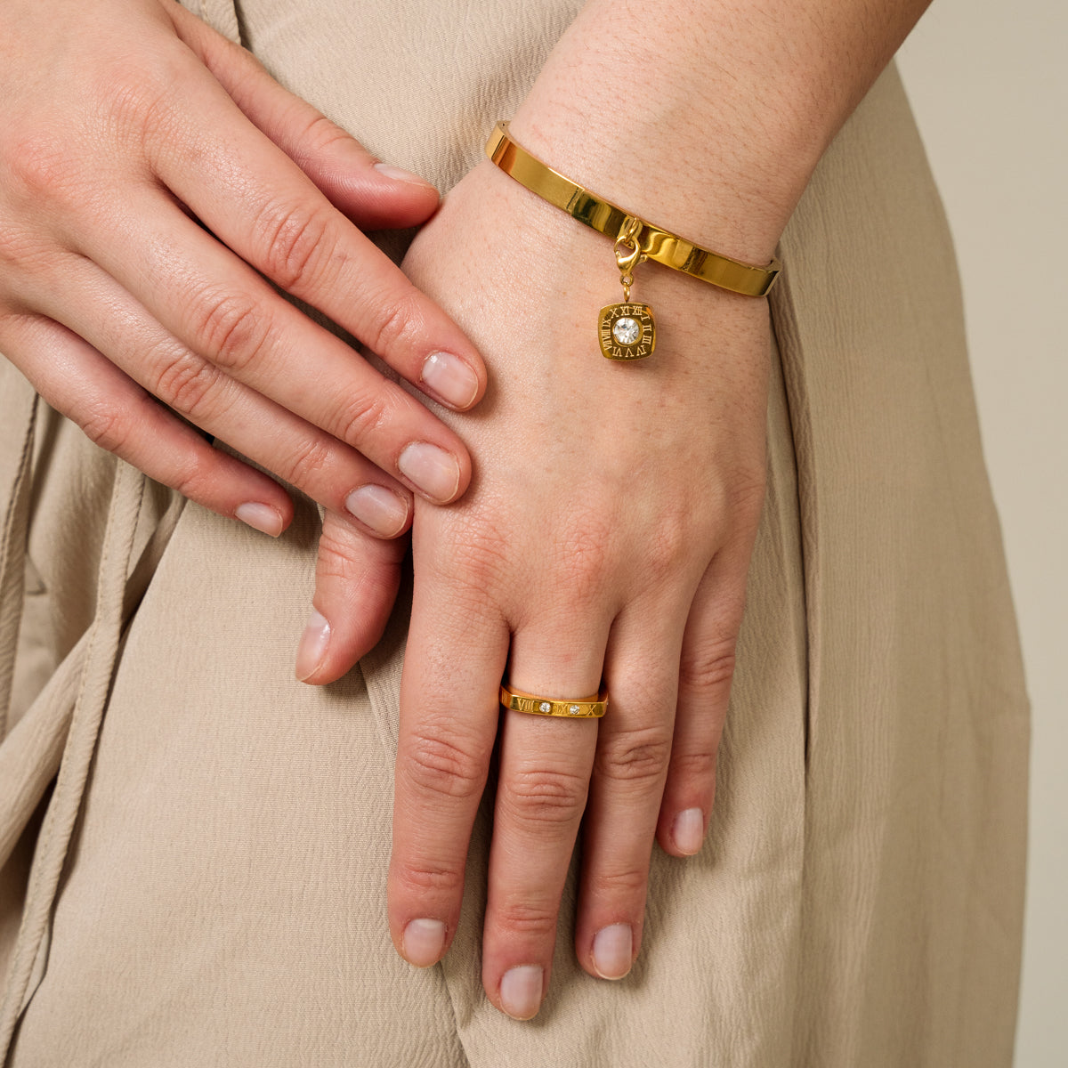 Square Latin Stone Clip On Pendant Bracelet - Gold