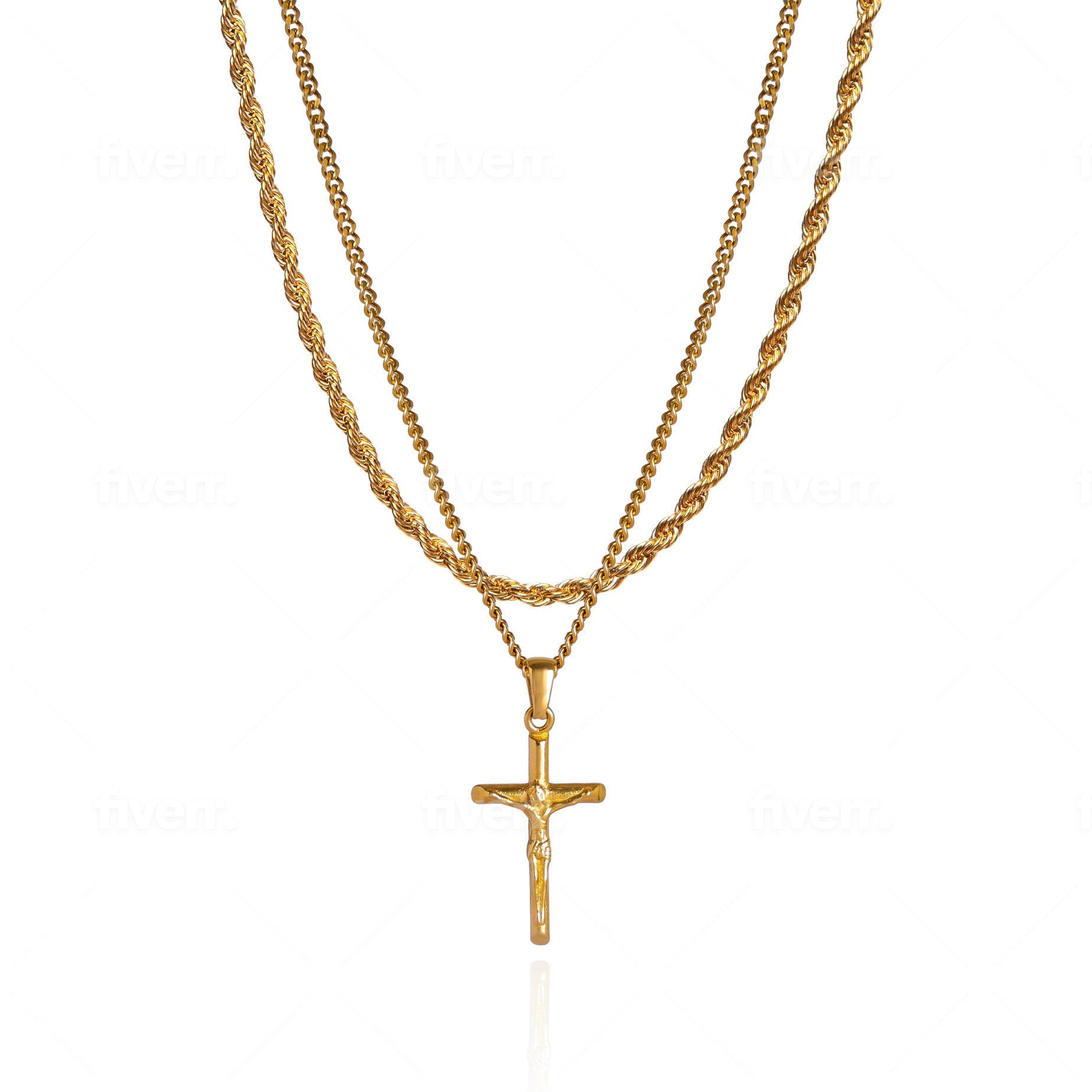 Cross Pendant Necklace X Rope Chain Full Set - Gold
