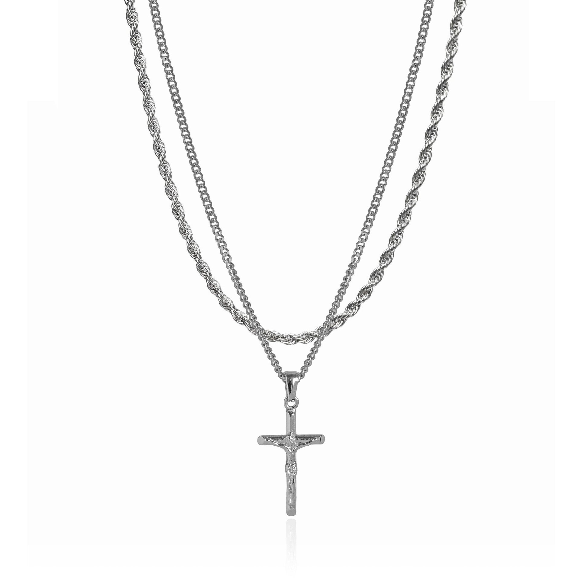 Cross Pendant Necklace X Rope Chain Full Set - Silver