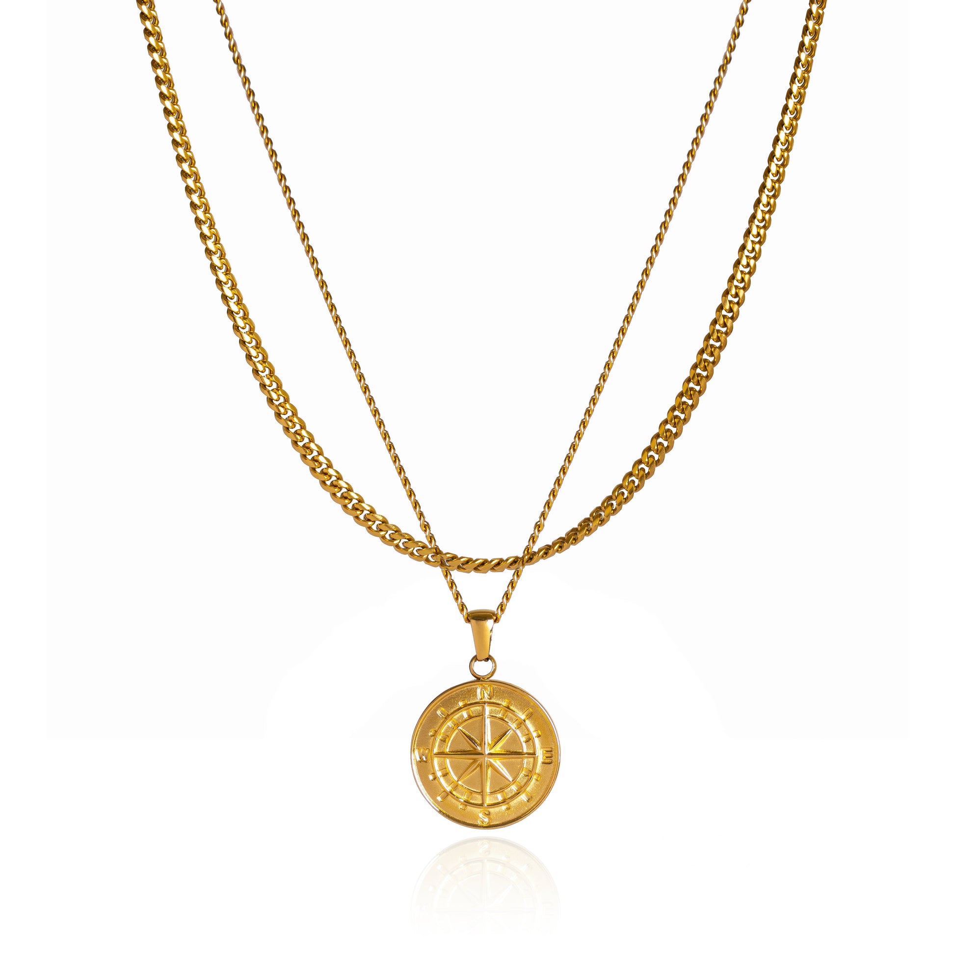 Compass Pendant Necklace X Curb Chain - Gold