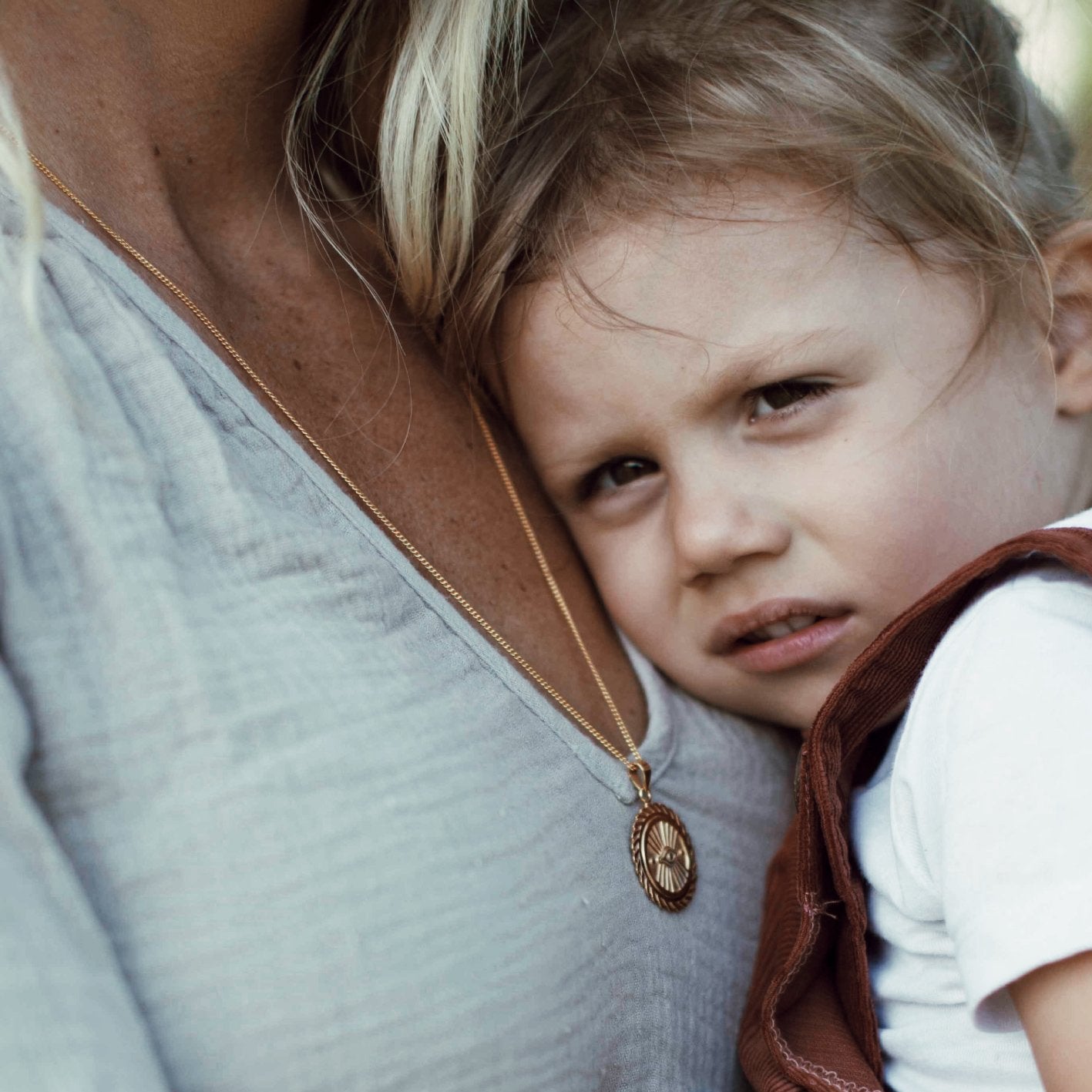 Shining strong with the symbols of protection on one side and the cycle of life & importance of a Motherhood on the other, the PROTECTIVE EYE talisman is one to be passed down for generations to come